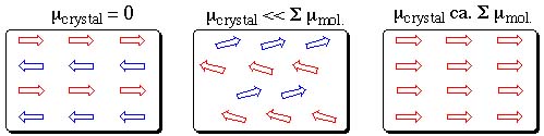Organic ferroelectrical materials are hard to make. Think about it. What happens when molecules with electrical dipole moments crystallize? Well, of course, the molecules want to arrange themselves in such a fashion that the dipoles all are aligned in a head-to-tail fashion and a chain or "string" of dipoles results which are all more or less parallel aligned. How will the strings arrange themselves in the crystal? Simple ideas of electrostatics show that neighboring dipoles are electrostiaclly best when they are anti-parallel. Hence, the crystals of dipolar molecules most usually are of the type shown on the left in Figure 1: Neighboring strings are antiparallel and the result is a complete cancellation of the electrical dipole moments in the crystal. In some cases it has been possible to realize crystals that basically show the same motif but all the molecules are "kicked" a bit in the same direction (center in Figure 1) so as to render the dipole cancellation incomplete. This can be achieved for example by incorporation of chiral groups into the molecule. Crystals in which dipolar molecules all are arranged in the same direction, schematically shown to the right in Figure 1, had been thought to be impossible to realize.
