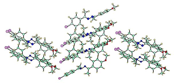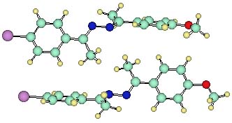 With the crystals of the molecule 4-bromo-4'-methoxyacetophenone azine, shown in Figure 2, we have now realized for the first time a near-perfectly dipole-aligned crystalline organic ferroelectric material. The crystal packing of the azine is illustrated in Figures 3 and 4. The crystal contains pairs of perfectly dipole-parallel aligned azines which are held together by arene-arene T-shape contacts. Such a pair is shown in Figure 3. The azine pairs are arranged in a bilayer fashion in the crystal, ABABAB. Each layer contains perfectly dipole-parallel aligned azines and the dipole moments of the layers reinforce each other. The azines contained within the two layers are nearly colinear and the overall crystal dipole moment is about seventy percent of the theoretically maximal crystal polarization. This degree of alignment is unprecedented.